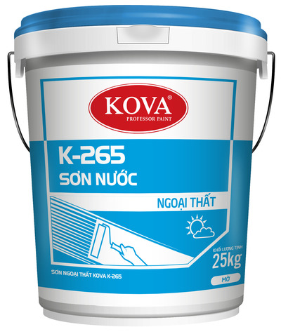 Mô tả : SƠN NGOẠI THẤT KOVA K-265 là loại sơn hệ Pure Acrylic phủ ngoài trời, đã hoàn toàn nhiệt đới hóa, rất phù hợp với khí hậu nóng ẩm của Việt Nam. Dùng để chống thấm và trang trí ngoài trời, phù hợp với nhiều loại bề mặt của tất cả các công trình xây dựng dân dụng và công nghiệp