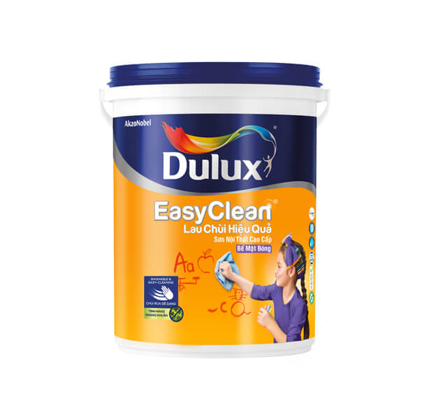Dulux EasyClean Lau Chùi Hiệu Quả - Bề mặt Bóng là sơn nội thất cao cấp giúp giữ tường nhà bạn luôn sạch đẹp hơn với các tính năng: Chùi rửa dễ dàng Tính năng kháng khuẩn (*) Công nghệ Colourguard giúp giữ màu sắc luôn tươi mới Bề Mặt Láng Mịn Nhẹ mùi, lượng VOC thấp Đạt chứng nhận xanh của tổ chức Singapore Green Building Product (SGBC) Không thêm chì, không thêm Thủy Ngân (*) Tính năng kháng khuẩn được kiểm nghiệm trong phòng thí nghiệm bởi tổ chức uy tín TUV SUD tại Singapore theo tiêu chuẩn JIS Z 2801:2012.